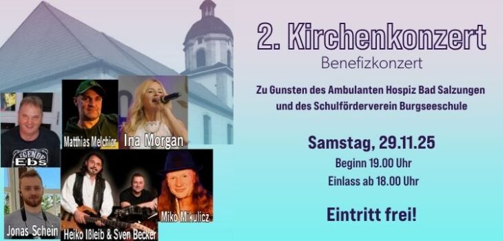 Der Eintritt ist frei, denn es handelt sich um ein sogenanntes „Hut-Konzert“ – die Gäste spenden einfach, was ihnen der Abend wert ist. Die gesamten Einnahmen fließen an zwei Herzensprojekte: die Hospizarbeit für Kinder und Jugendliche im Hospizzentrum Bad Salzungen sowie den Förderverein der Burgseeschule Bad Salzungen.